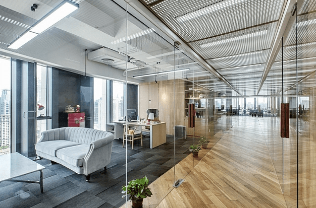 辦公空間設計中的裝飾細節和原材料選用技巧如下: